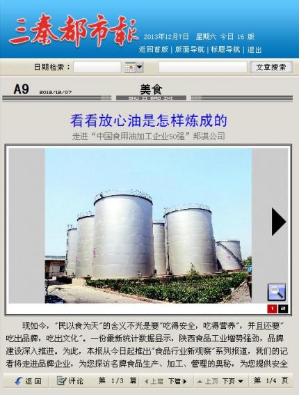現(xiàn)如今,"民以食為天"的含義不光是要"吃得安全,吃得營(yíng)養(yǎng)",并且還要"吃出品牌,吃出文化"。一份最新統(tǒng)計(jì)數(shù)據(jù)顯示,陜西食品工業(yè)增勢(shì)強(qiáng)勁,品牌建設(shè)深入推進(jìn)。為此,本報(bào)從今日起推出"食品行業(yè)新觀察"系列報(bào)道,我們的記者將走進(jìn)品牌企業(yè),為您探訪名牌食品生產(chǎn)、加工、管理的奧秘,為您提供安全消費(fèi)、放心消費(fèi)、健康消費(fèi)、時(shí)尚消費(fèi)指南。今日首期推出來自西安邦淇制油科技有限公司和多美滋嬰幼兒食品有限公司的報(bào)道。