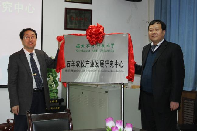 4月2日下午,石羊集團與西北農林科技大學動物科技學院在動科學院一樓會議室舉行“西北農林科技大學-石羊農牧產業發展研究中心”揭牌儀式,集團總裁常青山、副總裁兼農牧產業總經理韓春元、飼料事業部總經理李鵬華、西北農林科技大學校長助理、國家“千人計劃”入選者趙辛教授、教務處處長陳玉林教授、學校科研處孫楠副處長、動科學院院長姚軍虎教授、書記閆祖書老師、呼天明副院長、孫超副院長等20多名專家學者參加了揭牌儀式。揭牌儀式由閆祖書書記主持。