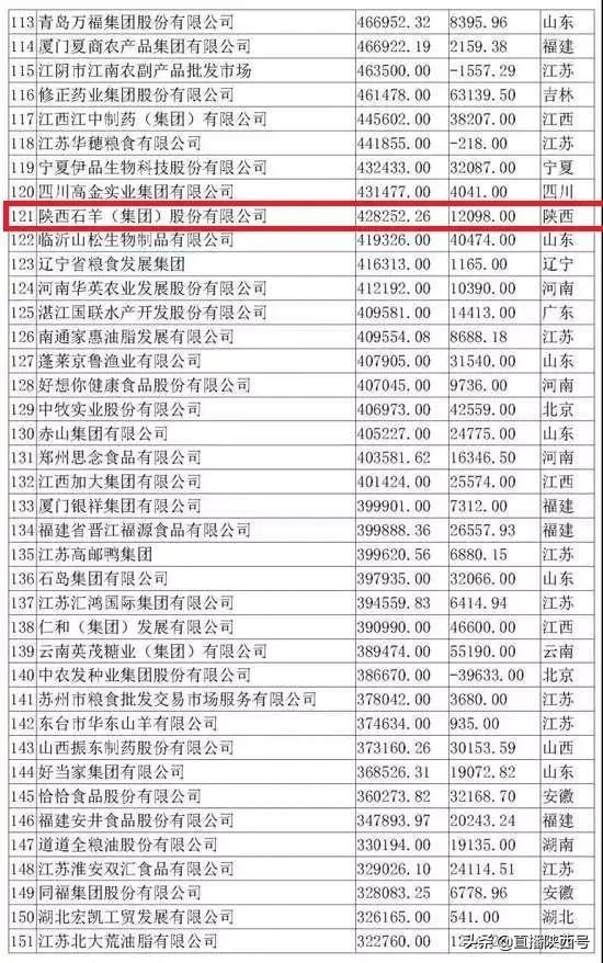 陜西上榜的七家企業(yè)中,陜西石羊集團排名最高,位居第121位。