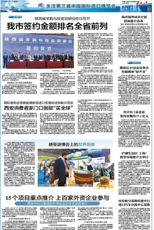 在上午舉行的采購與投資說明會上,相關負責人介紹,陜西省委、省政府高度重視參加本屆進博會,在前兩屆取得豐碩成果基礎上,今年再次組織6個專業(yè)分團、13個市(區(qū))交易分團共計超過1800家企業(yè)5300余人參展參會;精心籌備組織系列活動,以各種方式為參展商、企業(yè)家搭建對接洽談合作平臺。真誠歡迎廣大客商緊緊抓住陜西大發(fā)展的難得機遇和無限商機,深耕陜西市場,推動雙方在更深層次、更高水平務實合作。