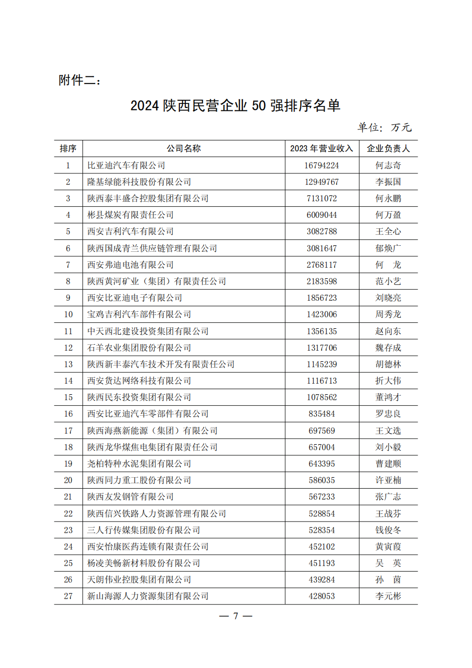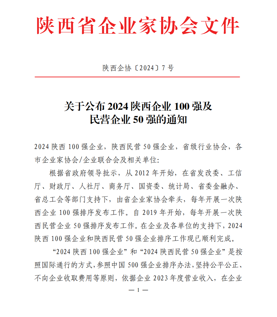 附:陜西百強(qiáng)企業(yè)的評(píng)選與發(fā)布,是在陜西省發(fā)改委、工信廳、財(cái)政廳、人社廳、商務(wù)廳、國資委、統(tǒng)計(jì)局、省委金融辦、省總工會(huì)等部門支持下,由省企業(yè)家協(xié)會(huì)牽頭,每年開展一次陜西企業(yè)100強(qiáng)和陜西民營(yíng)企業(yè)50強(qiáng)排序發(fā)布工作,受到了省委省政府的高度關(guān)注,得到了省級(jí)部門、企業(yè)界、媒體界等社會(huì)各界的普遍歡迎和廣泛認(rèn)可。