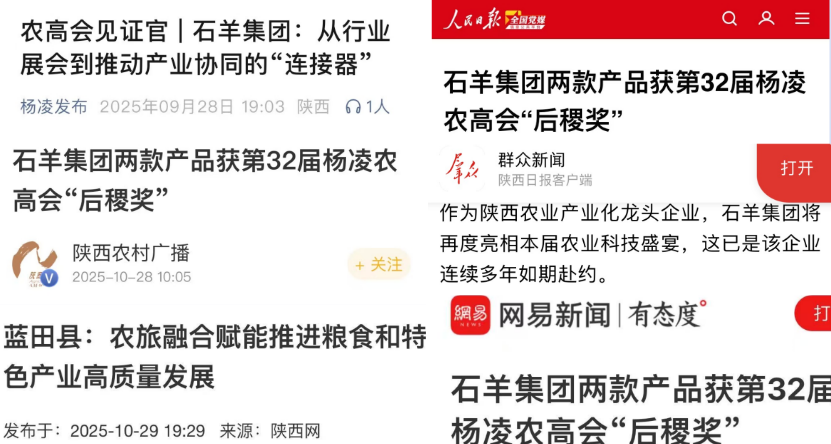 石羊集團(tuán)的亮眼表現(xiàn)和豐碩的榮譽(yù)也吸引了主流媒體的廣泛關(guān)注。人民日?qǐng)?bào)、農(nóng)民日?qǐng)?bào)、陜西日?qǐng)?bào)、陜西廣播電視臺(tái)、陜西農(nóng)村廣播、西安廣播電視臺(tái)、渭南廣播電視臺(tái)、楊凌電視臺(tái)、藍(lán)田縣廣播電視臺(tái)等中央、省、市、縣四級(jí)官方主流媒體,以及陜西網(wǎng)、鄉(xiāng)村振興新聞網(wǎng)、網(wǎng)易新聞網(wǎng)、騰訊新聞網(wǎng)等主流網(wǎng)絡(luò)媒體紛紛聚焦報(bào)道,使石羊集團(tuán)成為本屆農(nóng)高會(huì)上備受矚目的明星企業(yè),在眾多參展企業(yè)中脫穎而出,贏得了行業(yè)內(nèi)外的廣泛贊譽(yù)。五天時(shí)間,石羊集團(tuán)展位累計(jì)吸引100多萬(wàn)人次來(lái)訪(fǎng)參觀,充分展現(xiàn)了企業(yè)的品牌影響力與號(hào)召力。