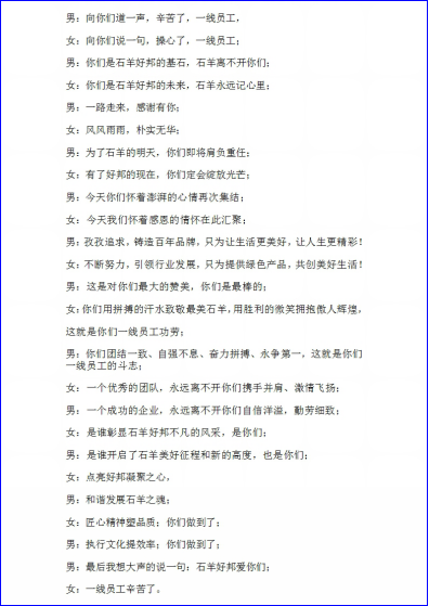 2018年10月14日,陜西涇河石羊食品有限公司在公司宴會廳隆重舉行“2018年第三季度文藝晚會暨表彰大會”